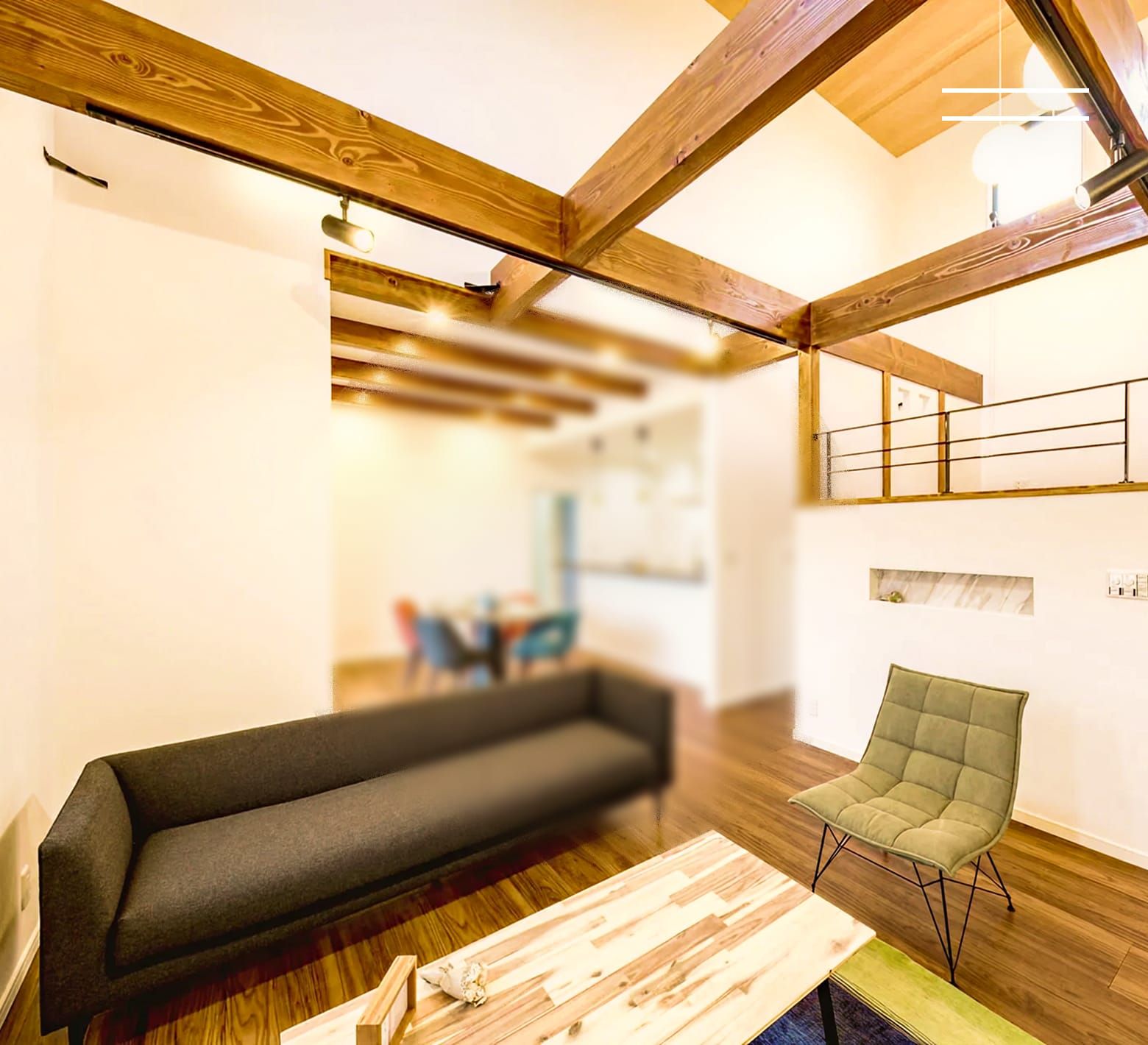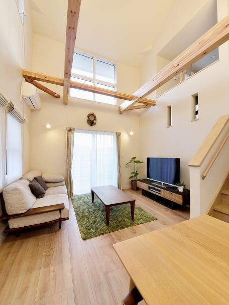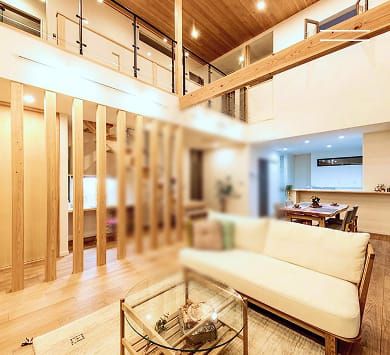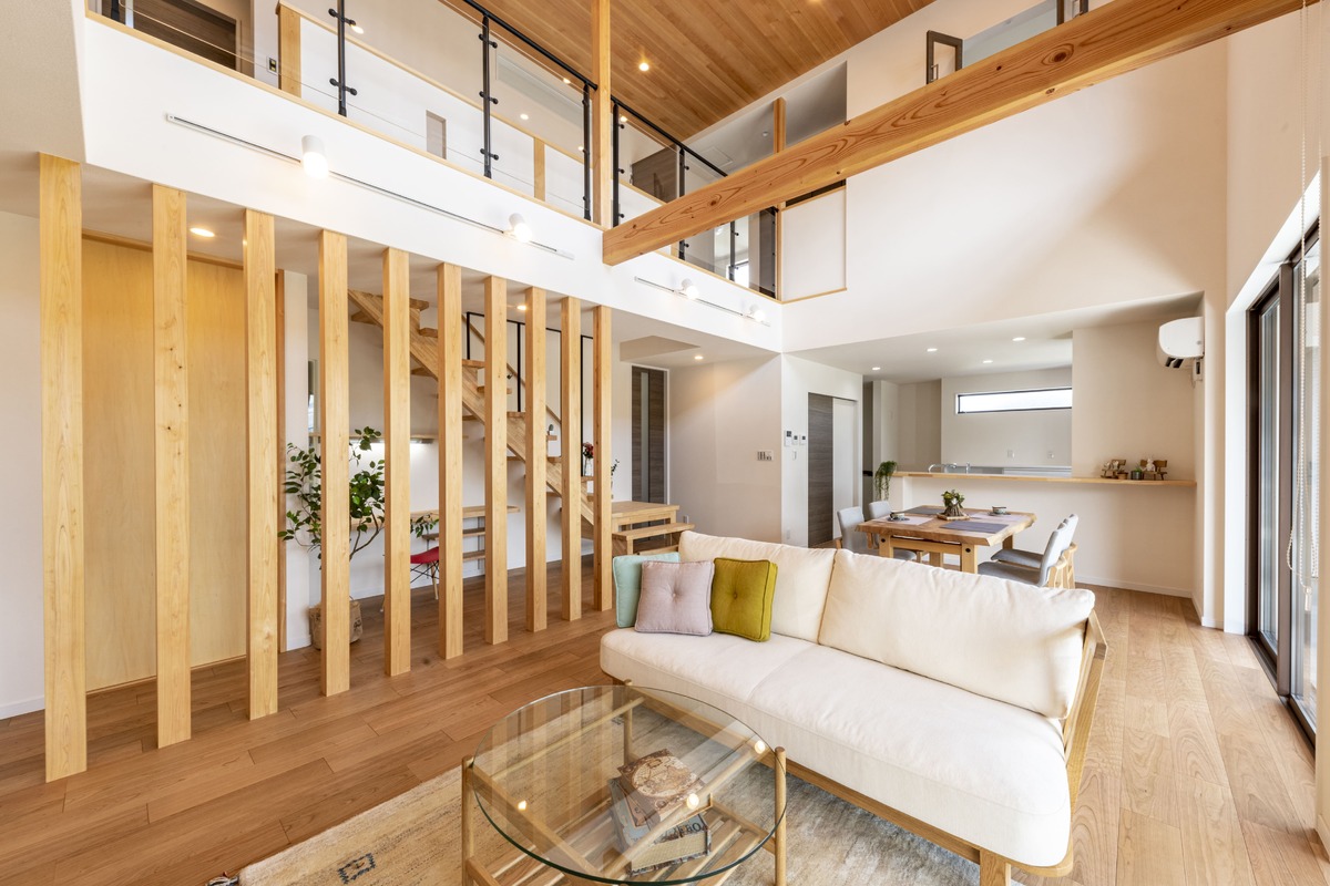 木のぬくもりと大空間の吹き抜けのある邸宅