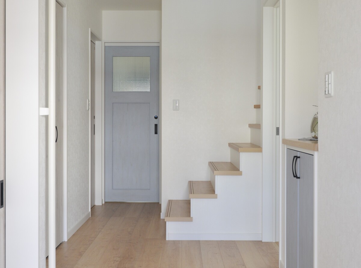 白色を基調とした中にも木のぬくもりを感じられる玄関です。