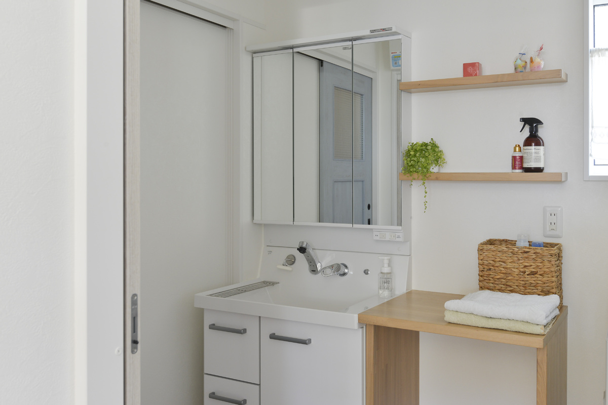 収納ができるパントリー、選択脱衣所、浴室がキッチンを囲むように配置されており、家事の導線がスムーズに、日々の家事が楽になります。
