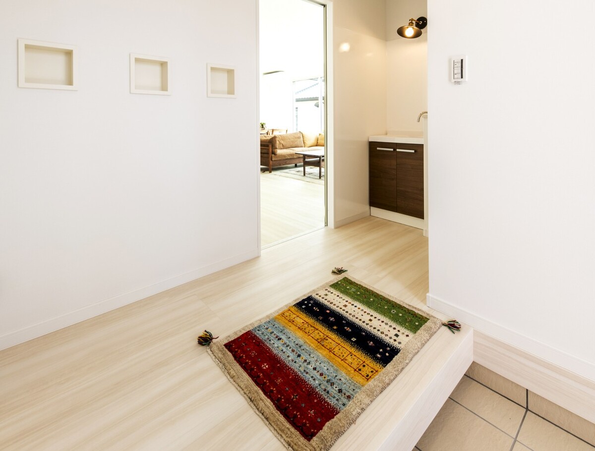 帰宅してすぐに靴や荷物をしまえる設計が、いつも綺麗な玄関を保つ秘訣です 。