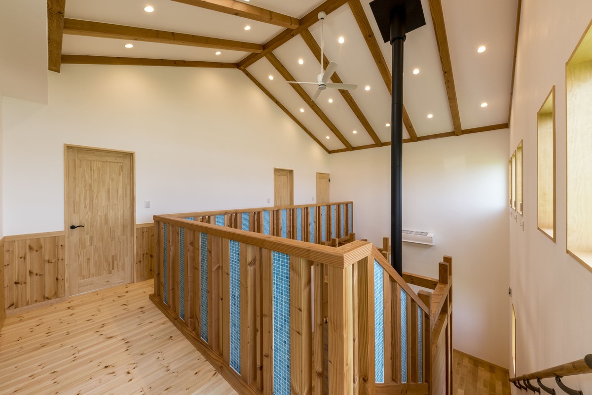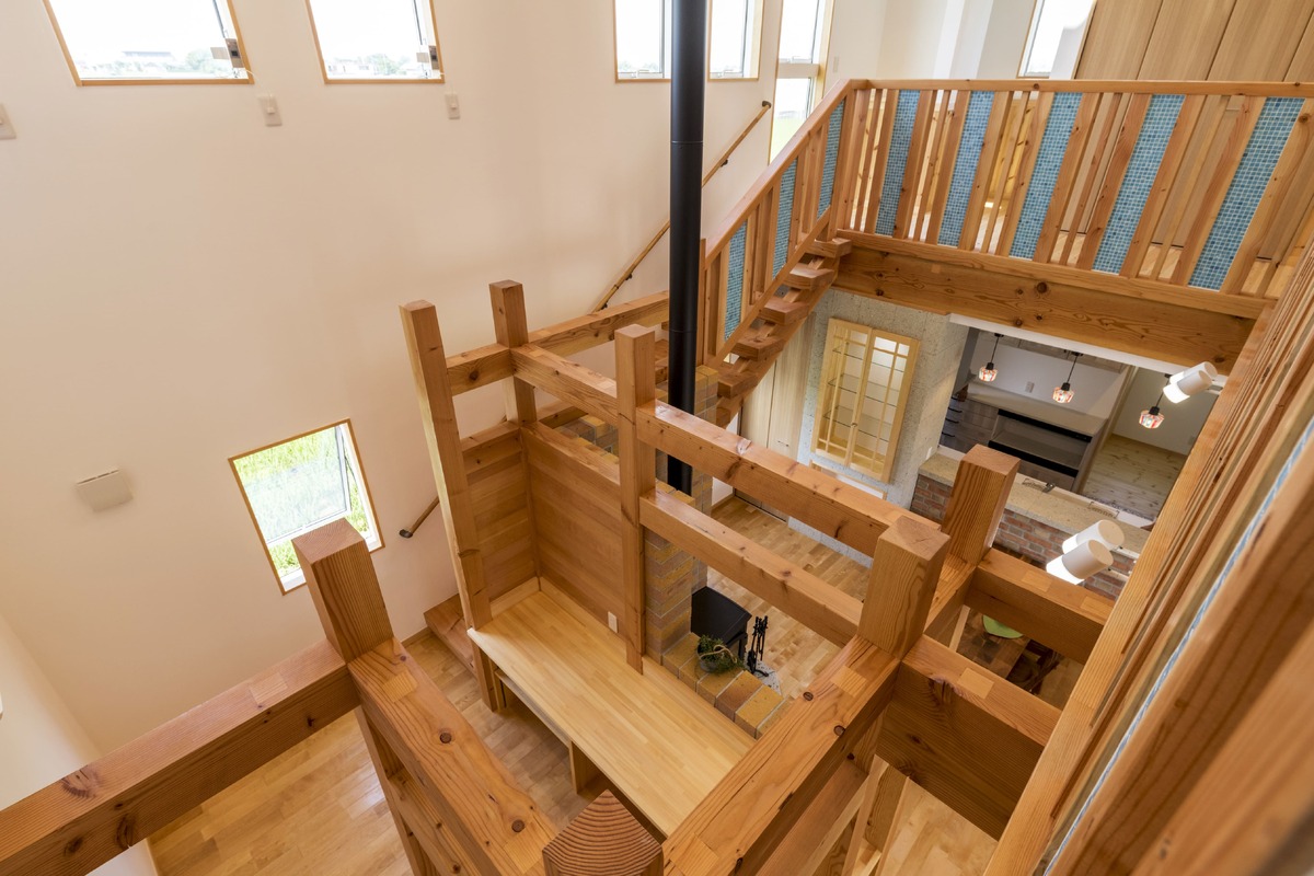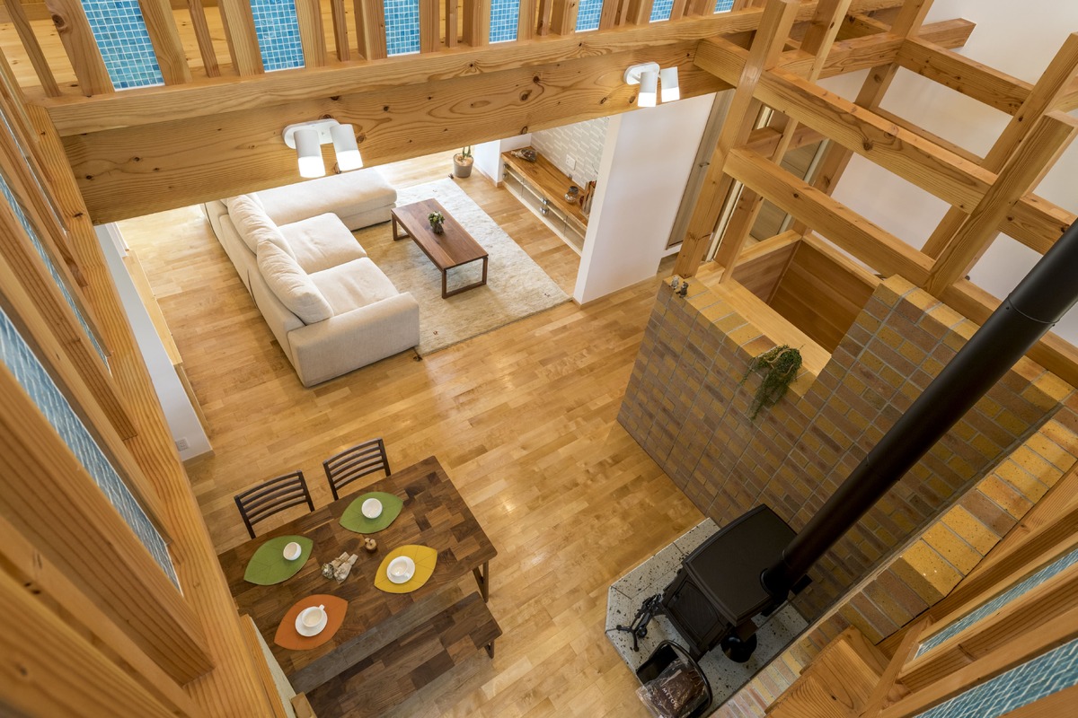 家族をつなぐ開放的な吹き抜けと薪ストーブ