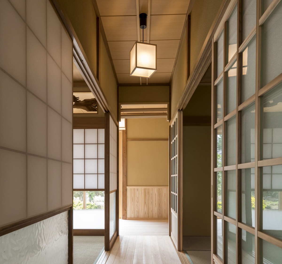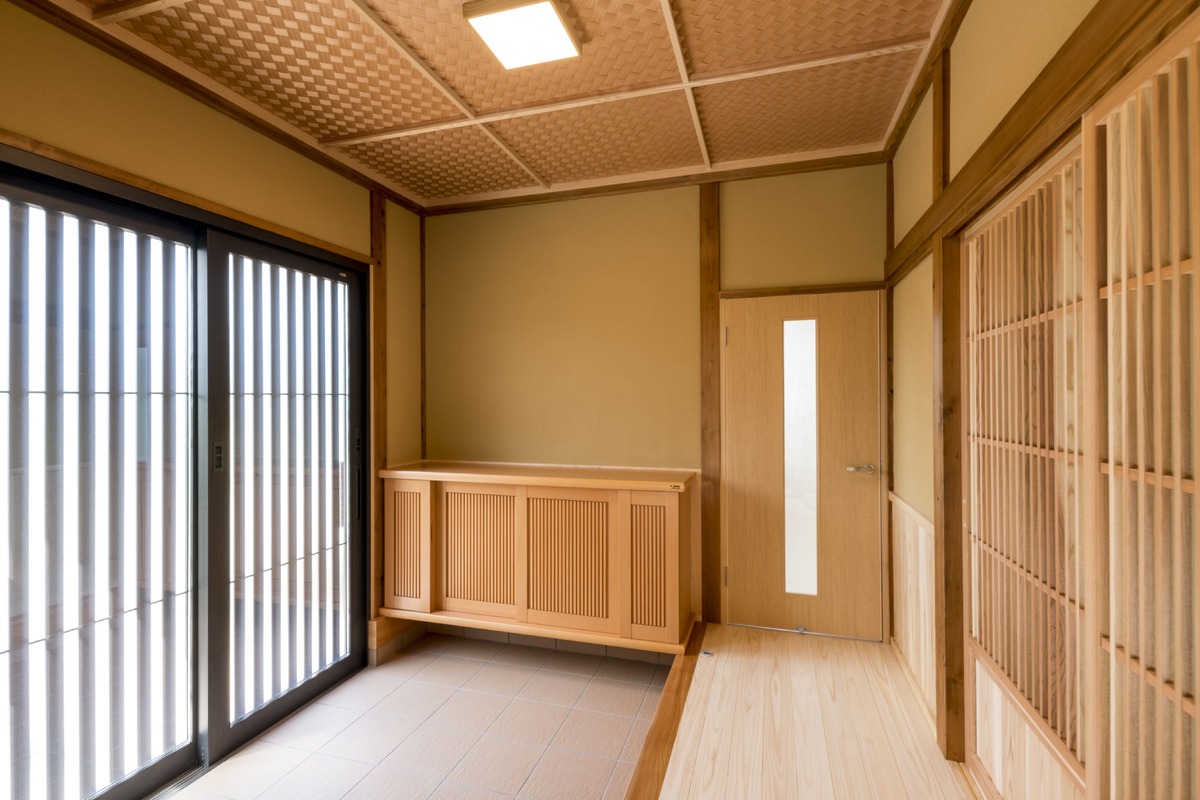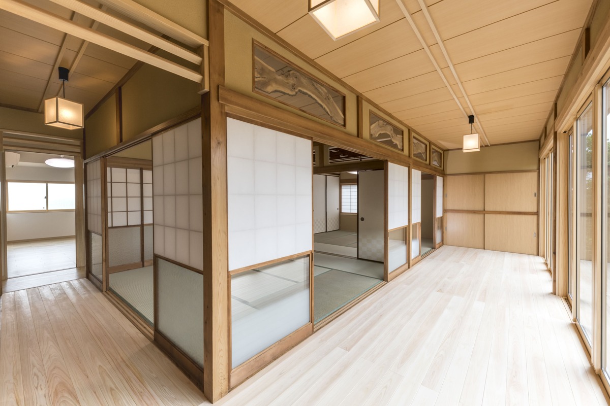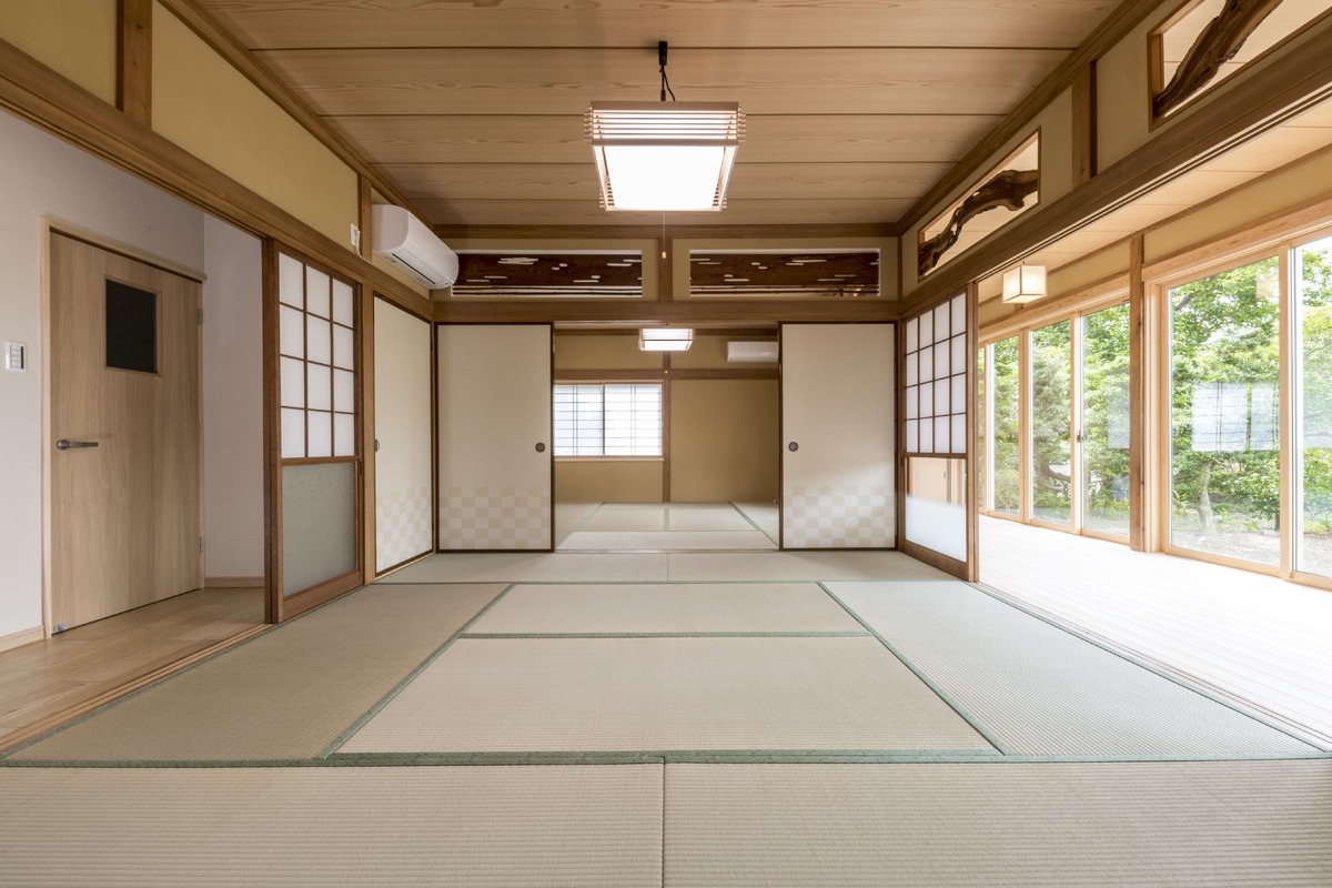 長い間過ごした思い出のある2間続きの和室と、1間奥行ある縁側や茶の間を残しつつ、壁や天井などの仕上材のほか、ふすまや照明器具などを交換し、新しい住まいに設計しました。