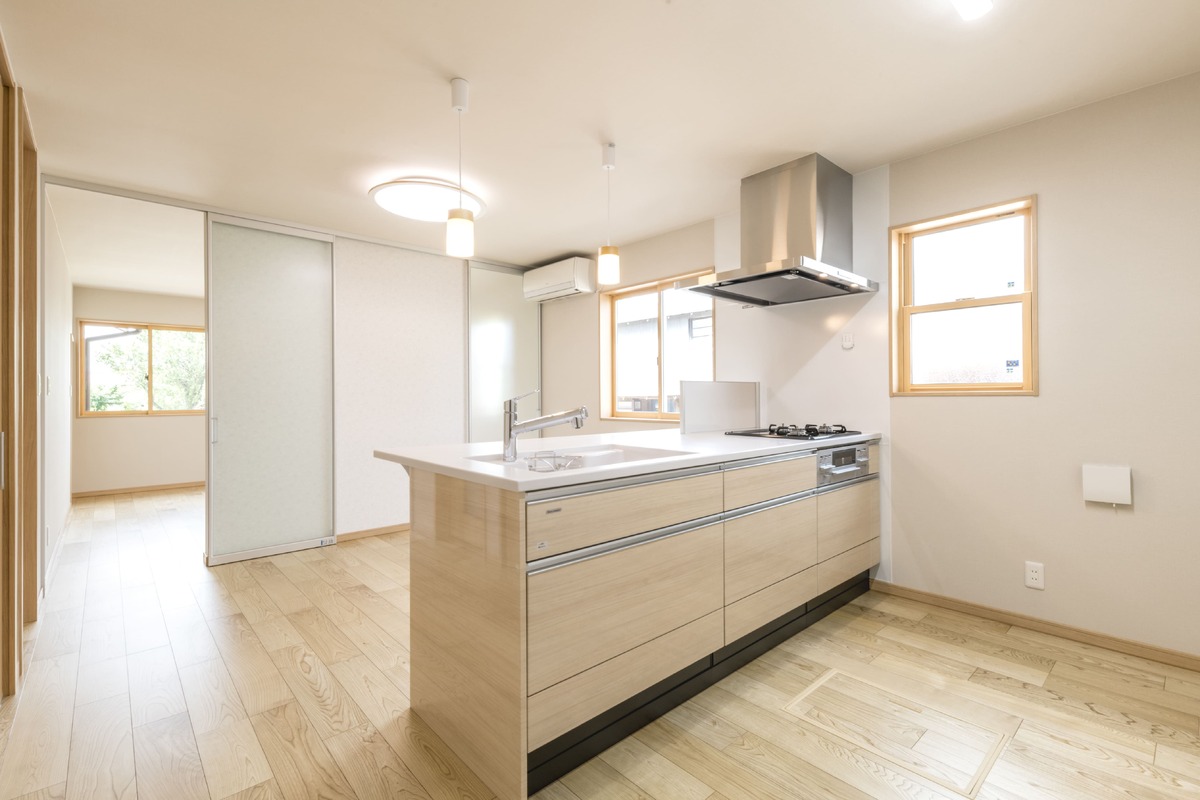 ダイニングキッチンには間仕切りを設けて、対面式のキッチンとバリアフリーにしたいということでした。